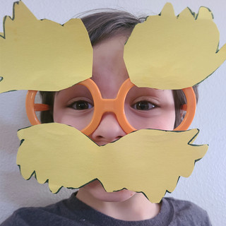 Print two free Lorax mustaches found here. You can print directly onto yellow paper, print on white paper and color them yellow, or print on white paper, cut them out, trace them on yellow paper, felt or foam and cut again.